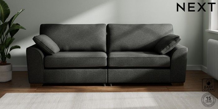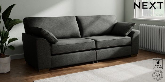 7.3.1 Buy Stamford 4 Seater Sofa Tweedy Blend Easy Clean Charcoal Grey Large Square Angle - Mid from the Seasons online shop Click here to use our website with more accessibility support, for example screen readers