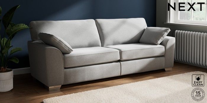 7.3.1 Buy Stamford 4 Seater Sofa Tweedy Blend Easy Clean Light Silver Grey Large Square Angle - Chrome Metal from the Seasons online shop Click here to use our website with more accessibility support, for example screen readers
