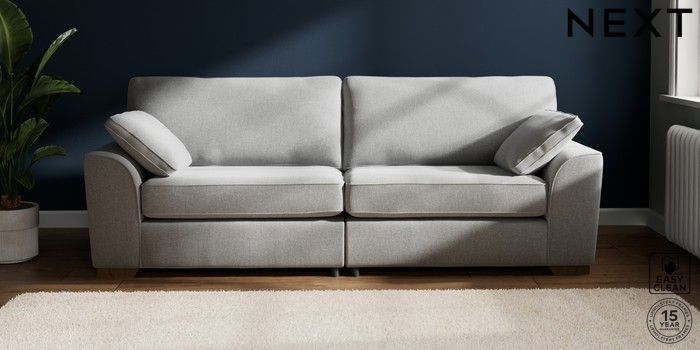 7.2.10 Buy Stamford 4 Seater Sofa Tweedy Blend Easy Clean Light Silver Grey Large Square Angle - Mid from the Seasons online shop Click here to use our website with more accessibility support, for example screen readers