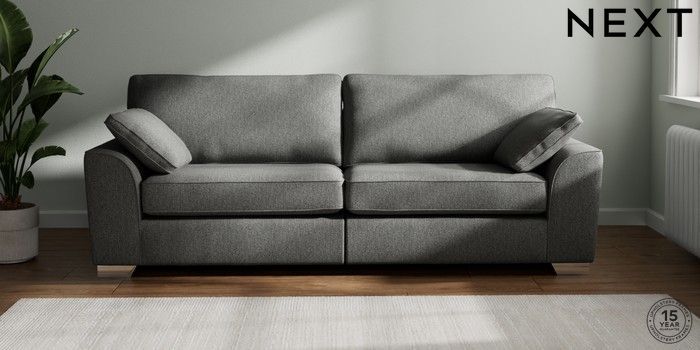 7.3.1 Buy Stamford 4 Seater Sofa Tweedy Chenille Dark Grey Large Square Angle - Chrome Metal from the Seasons online shop Click here to use our website with more accessibility support, for example screen readers