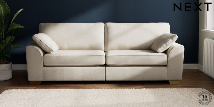 7.3.1 Buy Stamford 4 Seater Sofa Tweedy Chenille Oyster Large Square Angle - Brushed Brass from the Seasons online shop Click here to use our website with more accessibility support, for example screen readers
