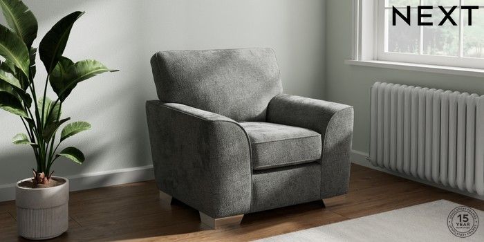 7.3.1 Buy Stamford Armchair Chunky Chenille Dark Grey Square Angle - Chrome Metal from the Seasons online shop Click here to use our website with more accessibility support, for example screen readers