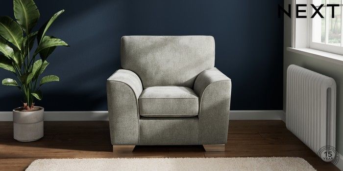 7.2.10 Buy Stamford Armchair Chunky Chenille Light Grey Square Angle - Chrome Metal from the Seasons online shop Click here to use our website with more accessibility support, for example screen readers