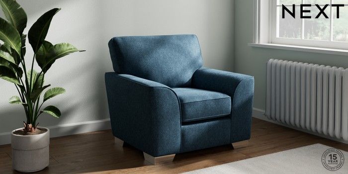 7.3.1 Buy Stamford Armchair Cotswold Chenille Dark Blue Square Angle - Chrome Metal from the Seasons online shop Click here to use our website with more accessibility support, for example screen readers