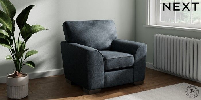 7.3.1 Buy Stamford Armchair Plush Chenille Slate Blue Square Angle - Gunmetal from the Seasons online shop Click here to use our website with more accessibility support, for example screen readers