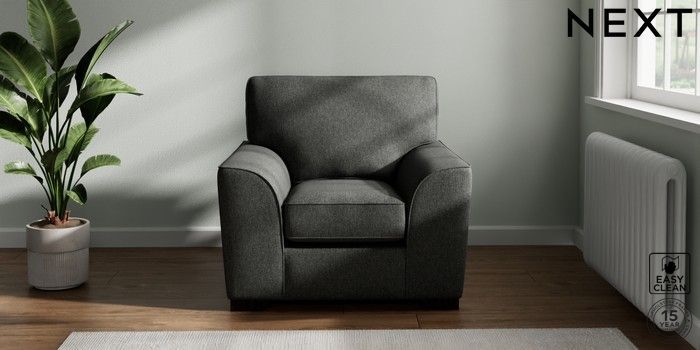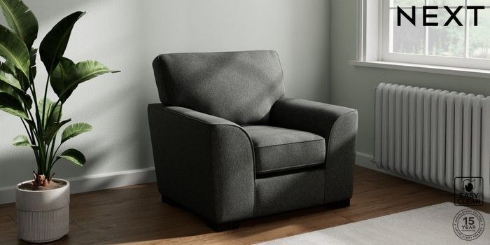 7.3.1 Buy Stamford Armchair Tweedy Blend Easy Clean Charcoal Grey Square Angle - Dark from the Seasons online shop Click here to use our website with more accessibility support, for example screen readers