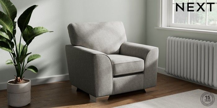 7.3.1 Buy Stamford Armchair Tweedy Chenille Mid Grey Square Angle - Chrome Metal from the Seasons online shop Click here to use our website with more accessibility support, for example screen readers