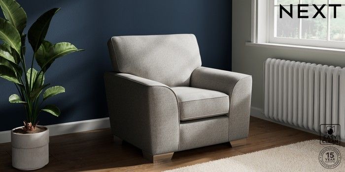 7.3.1 Buy Stamford Armchair Woven Chenille Easy Clean Light Grey Square Angle - Chrome Metal from the Seasons online shop Click here to use our website with more accessibility support, for example screen readers