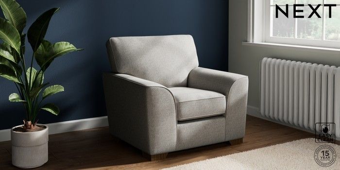 7.2.10 Buy Stamford Armchair Woven Chenille Easy Clean Light Grey Square Angle - Mid from the Seasons online shop Click here to use our website with more accessibility support, for example screen readers