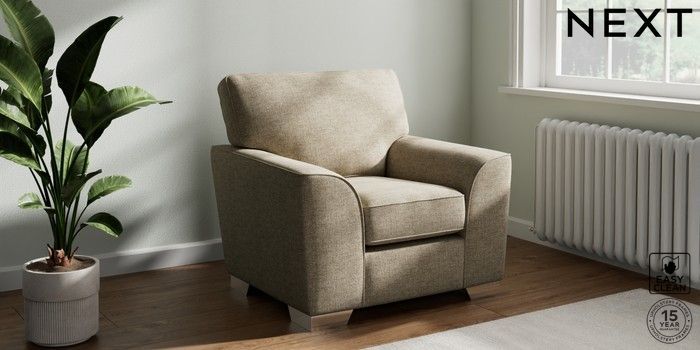 7.3.1 Buy Stamford Armchair Woven Chenille Easy Clean Mid Natural Square Angle - Chrome Metal from the Seasons online shop Click here to use our website with more accessibility support, for example screen readers