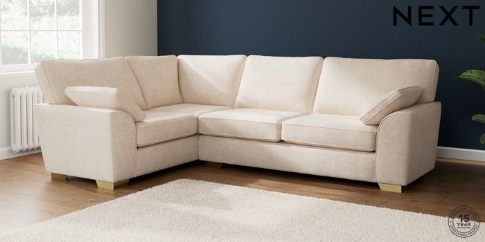 7.2.10 Buy Stamford Large Corner Sofa - Left Hand Boucle Chenille Oyster Large Square Angle - Brushed Brass from the Seasons online shop Click here to use our website with more accessibility support, for example screen readers