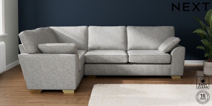7.2.10 Buy Stamford Large Corner Sofa - Left Hand Chunky Boucle Easy Clean Light Grey Large Square Angle - Brushed Brass from the Seasons online shop Click here to use our website with more accessibility support, for example screen readers
