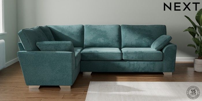 7.3.1 Buy Stamford Large Corner Sofa - Left Hand Chunky Chenille Mid Teal Green Large Square Angle - Chrome Metal from the Seasons online shop Click here to use our website with more accessibility support, for example screen readers
