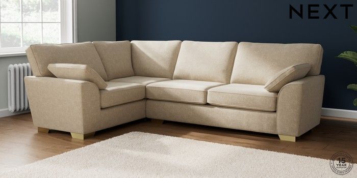 7.2.10 Buy Stamford Large Corner Sofa - Left Hand Chunky Weave Cream Large Square Angle - Brushed Brass from the Seasons online shop Click here to use our website with more accessibility support, for example screen readers