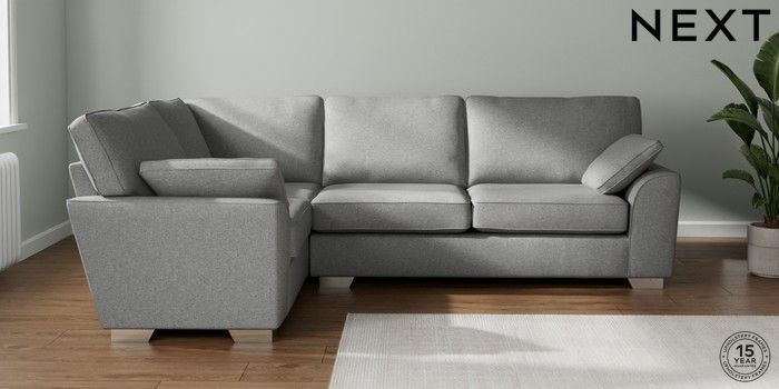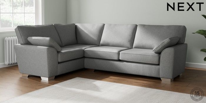 7.2.10 Buy Stamford Large Corner Sofa - Left Hand Chunky Weave Mid Grey Large Square Angle - Chrome Metal from the Seasons online shop Click here to use our website with more accessibility support, for example screen readers