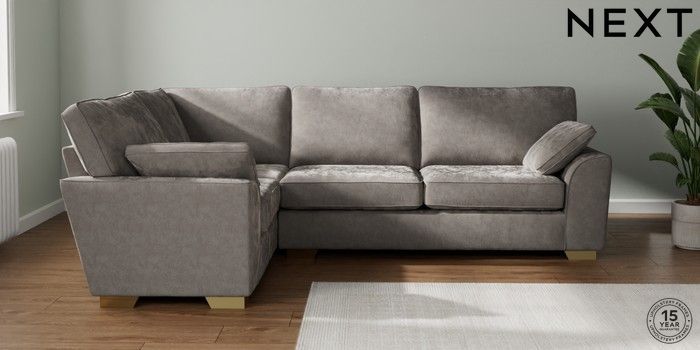 7.3.1 Buy Stamford Large Corner Sofa - Left Hand Distressed Velour French Grey Large Square Angle - Brushed Brass from the Seasons online shop Click here to use our website with more accessibility support, for example screen readers
