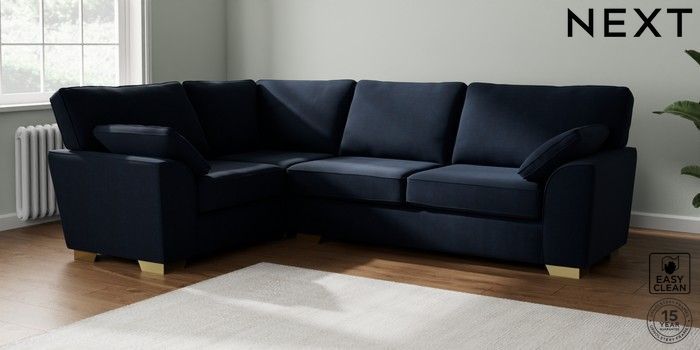 7.2.10 Buy Stamford Large Corner Sofa - Left Hand Fine Chenille Easy Clean Dark Navy Blue Large Square Angle - Brushed Brass from the Seasons online shop Click here to use our website with more accessibility support, for example screen readers