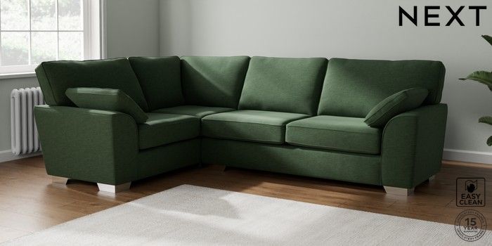 7.3.1 Buy Stamford Large Corner Sofa - Left Hand Fine Chenille Easy Clean Mid Khaki Green Large Square Angle - Chrome Metal from the Seasons online shop Click here to use our website with more accessibility support, for example screen readers