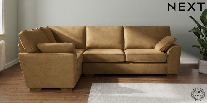 7.2.10 Buy Stamford Large Corner Sofa - Left Hand Luxe Chenille Honey Yellow Large Square Angle - Mid from the Seasons online shop Click here to use our website with more accessibility support, for example screen readers
