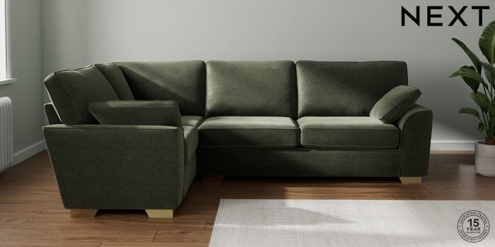 7.2.10 Buy Stamford Large Corner Sofa - Left Hand Luxe Chenille Mid Green Large Square Angle - Brushed Brass from the Seasons online shop Click here to use our website with more accessibility support, for example screen readers