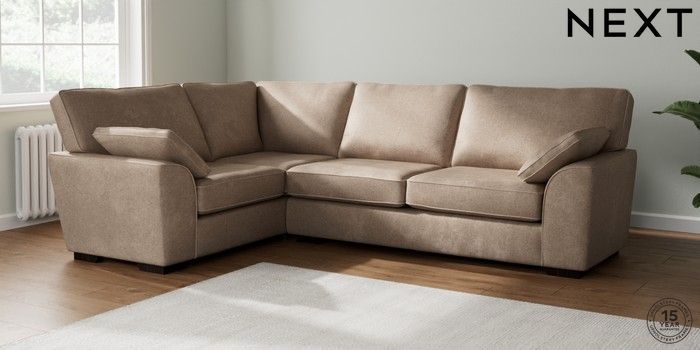 7.2.10 Buy Stamford Large Corner Sofa - Left Hand Plush Chenille Mid Natural Large Square Angle - Dark from the Seasons online shop Click here to use our website with more accessibility support, for example screen readers