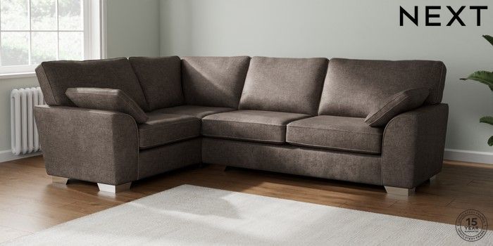 7.3.1 Buy Stamford Large Corner Sofa - Left Hand Plush Chenille Mink Brown Large Square Angle - Chrome Metal from the Seasons online shop Click here to use our website with more accessibility support, for example screen readers