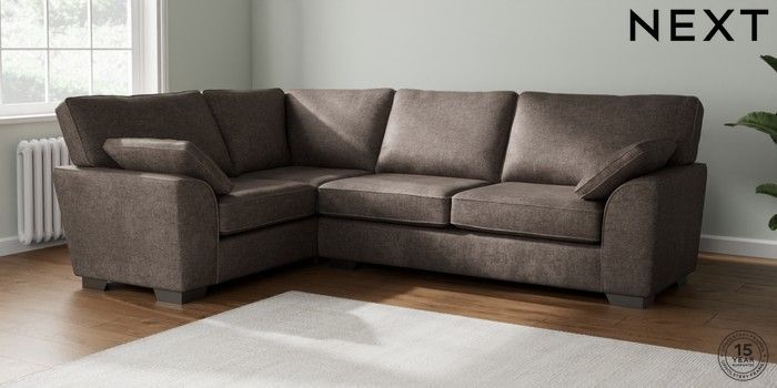 7.3.1 Buy Stamford Large Corner Sofa - Left Hand Plush Chenille Mink Brown Large Square Angle - Gunmetal from the Seasons online shop Click here to use our website with more accessibility support, for example screen readers