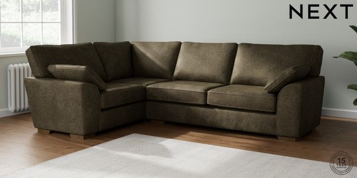7.2.10 Buy Stamford Large Corner Sofa - Left Hand Plush Chenille Moss Green Large Square Angle - Mid from the Seasons online shop Click here to use our website with more accessibility support, for example screen readers