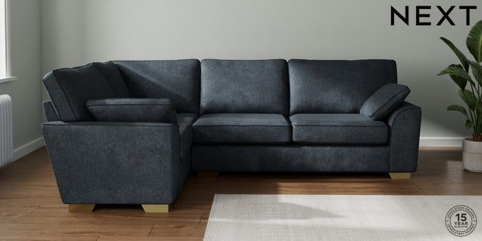 7.2.10 Buy Stamford Large Corner Sofa - Left Hand Plush Chenille Slate Blue Large Square Angle - Brushed Brass from the Seasons online shop Click here to use our website with more accessibility support, for example screen readers