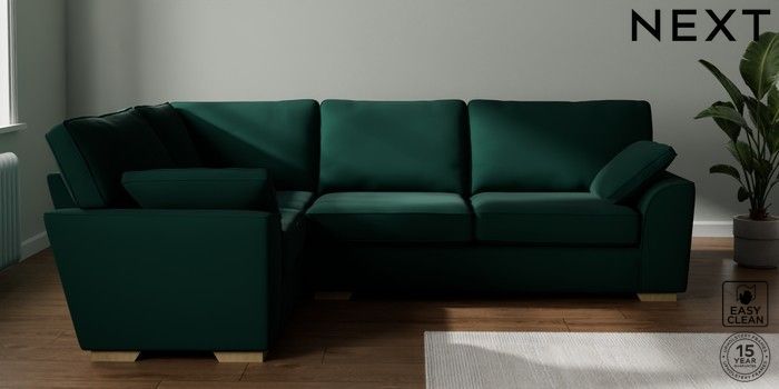 7.3.1 Buy Stamford Large Corner Sofa - Left Hand Plush Velvet Easy Clean Bottle Green Large Square Angle - Light from the Seasons online shop Click here to use our website with more accessibility support, for example screen readers