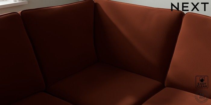 7.3.1 Buy Stamford Large Corner Sofa - Left Hand Plush Velvet Easy Clean Ginger Orange Large Square Angle - Chrome Metal from the Seasons online shop Click here to use our website with more accessibility support, for example screen readers