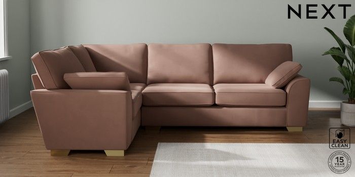 7.3.1 Buy Stamford Large Corner Sofa - Left Hand Plush Velvet Easy Clean Mid Natural Large Square Angle - Brushed Brass from the Seasons online shop Click here to use our website with more accessibility support, for example screen readers