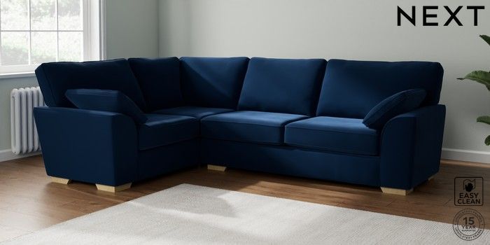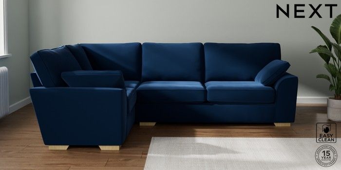 7.2.10 Buy Stamford Large Corner Sofa - Left Hand Plush Velvet Easy Clean Navy Blue Large Square Angle - Light from the Seasons online shop Click here to use our website with more accessibility support, for example screen readers