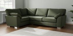7.3.1 Buy Stamford Large Corner Sofa - Left Hand Relaxed Linen Look Dark Green Large Square Angle - Chrome Metal from the Seasons online shop Click here to use our website with more accessibility support, for example screen readers