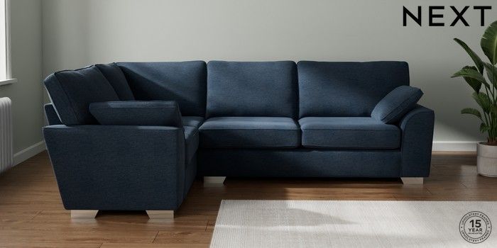 7.2.10 Buy Stamford Large Corner Sofa - Left Hand Ripple Chenille Dark Blue Large Square Angle - Chrome Metal from the Seasons online shop Click here to use our website with more accessibility support, for example screen readers