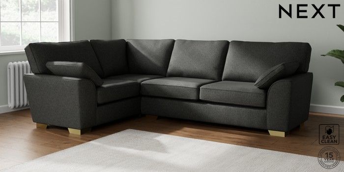 7.3.1 Buy Stamford Large Corner Sofa - Left Hand Tweedy Blend Easy Clean Charcoal Grey Large Square Angle - Brushed Brass from the Seasons online shop Click here to use our website with more accessibility support, for example screen readers