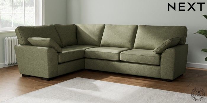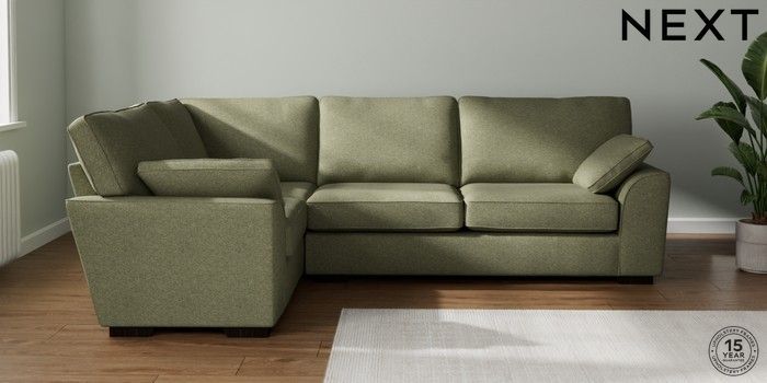 7.2.10 Buy Stamford Large Corner Sofa - Left Hand Tweedy Chenille Mid Moss Green Large Square Angle - Dark from the Seasons online shop Click here to use our website with more accessibility support, for example screen readers