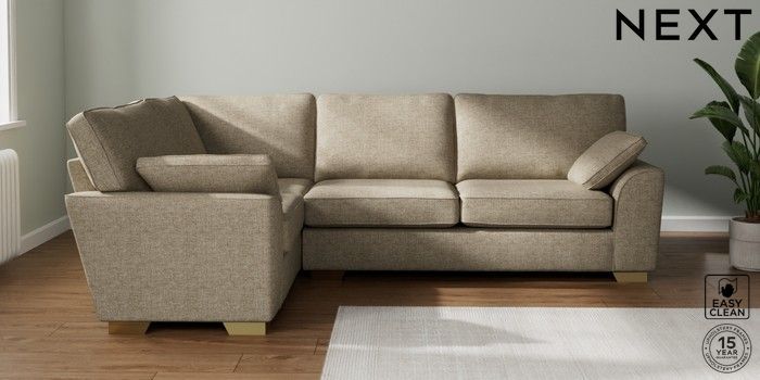 7.3.1 Buy Stamford Large Corner Sofa - Left Hand Woven Chenille Easy Clean Mid Natural Large Square Angle - Brushed Brass from the Seasons online shop Click here to use our website with more accessibility support, for example screen readers