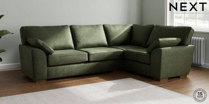 7.2.10 Buy Stamford Large Corner Sofa - Right Hand Boucle Chenille Dark Moss Green Large Square Angle - Mid from the Seasons online shop Click here to use our website with more accessibility support, for example screen readers