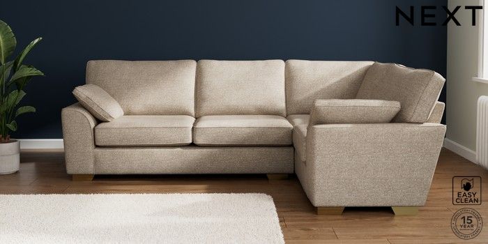 7.3.1 Buy Stamford Large Corner Sofa - Right Hand Chunky Boucle Easy Clean Mid Natural Large Square Angle - Brushed Brass from the Seasons online shop Click here to use our website with more accessibility support, for example screen readers