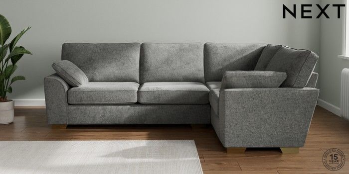 7.2.10 Buy Stamford Large Corner Sofa - Right Hand Chunky Chenille Dark Grey Large Square Angle - Brushed Brass from the Seasons online shop Click here to use our website with more accessibility support, for example screen readers