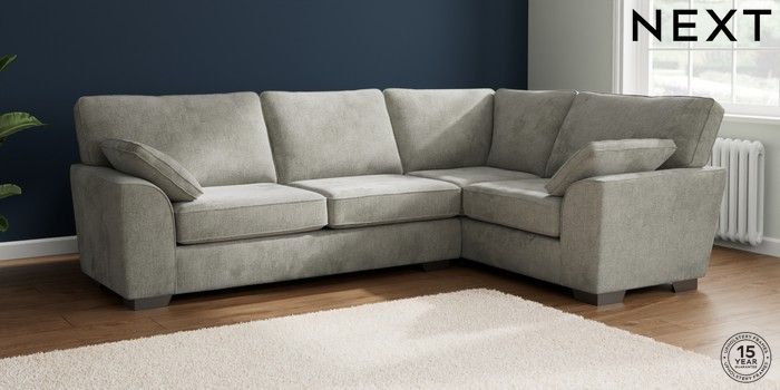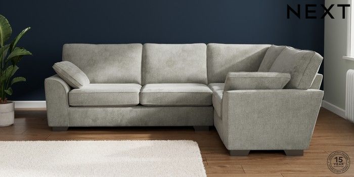 7.2.10 Buy Stamford Large Corner Sofa - Right Hand Chunky Chenille Light Grey Large Square Angle - Gunmetal from the Seasons online shop Click here to use our website with more accessibility support, for example screen readers