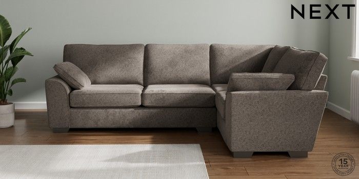 7.3.1 Buy Stamford Large Corner Sofa - Right Hand Chunky Chenille Mink Brown Large Square Angle - Gunmetal from the Seasons online shop Click here to use our website with more accessibility support, for example screen readers