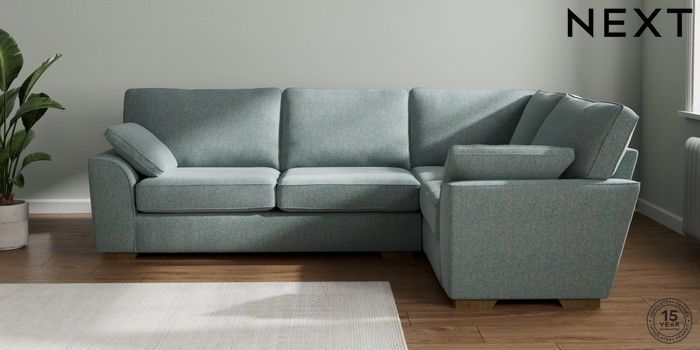 7.2.10 Buy Stamford Large Corner Sofa - Right Hand Chunky Marl Mid Blue Large Square Angle - Mid from the Seasons online shop Click here to use our website with more accessibility support, for example screen readers