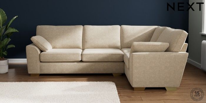 7.2.10 Buy Stamford Large Corner Sofa - Right Hand Chunky Weave Cream Large Square Angle - Brushed Brass from the Seasons online shop Click here to use our website with more accessibility support, for example screen readers