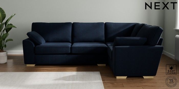 7.2.10 Buy Stamford Large Corner Sofa - Right Hand Fine Chenille Easy Clean Dark Navy Blue Large Square Angle - Light from the Seasons online shop Click here to use our website with more accessibility support, for example screen readers