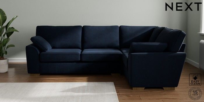 7.2.10 Buy Stamford Large Corner Sofa - Right Hand Fine Chenille Easy Clean Dark Navy Blue Large Square Angle - Mid from the Seasons online shop Click here to use our website with more accessibility support, for example screen readers