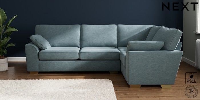 7.2.10 Buy Stamford Large Corner Sofa - Right Hand Fine Chenille Easy Clean Mid Blue Large Square Angle - Brushed Brass from the Seasons online shop Click here to use our website with more accessibility support, for example screen readers