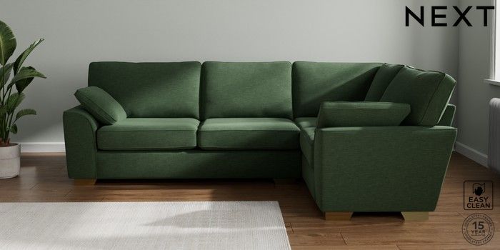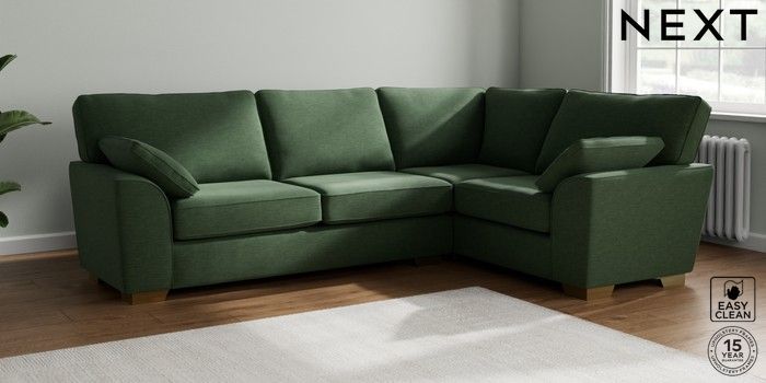 7.3.1 Buy Stamford Large Corner Sofa - Right Hand Fine Chenille Easy Clean Mid Khaki Green Large Square Angle - Brushed Brass from the Seasons online shop Click here to use our website with more accessibility support, for example screen readers