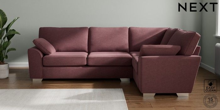7.3.1 Buy Stamford Large Corner Sofa - Right Hand Fine Chenille Easy Clean Mid Mulberry Purple Large Square Angle - Chrome Metal from the Seasons online shop Click here to use our website with more accessibility support, for example screen readers